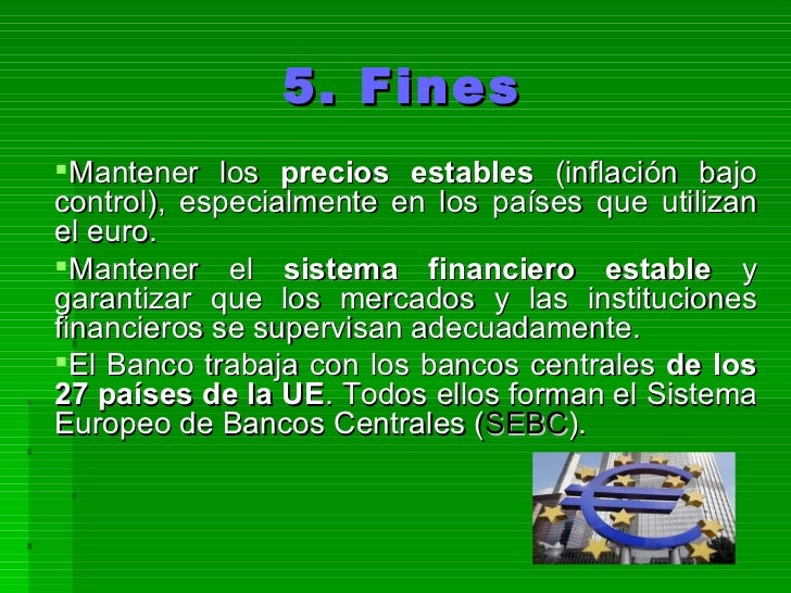 Nuestra función principal es mantener la estabilidad de precios en la zona del euro para preservar el poder adquisitivo de la moneda única. Fuente: Tipos de cambio de referencia publicados por el Banco Central Europeo y FMI para el DEG. Por lo general, un banco central imprime la moneda nacional, que a menudo sirve como moneda de curso legal de la nación.