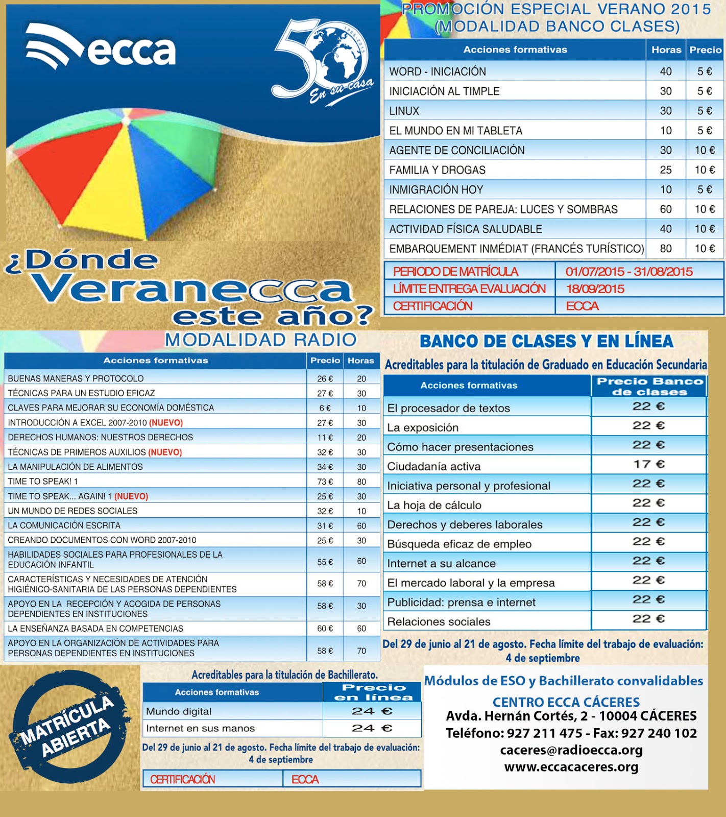 Radio ECCA Cáceres: NUESTRA OFERTA FORMATIVA DE VERANO