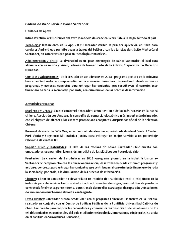 Cadena de Valor Servicio Banco Santander | Cadena de valor | Bancos | Prueba gratuita de 30 días ...