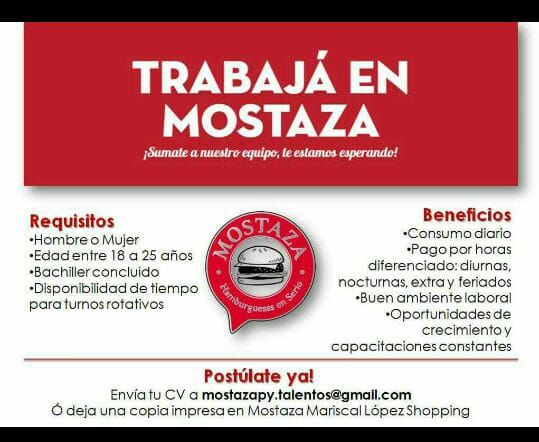 TRABAJÁ EN MOSTAZA | 💼 BOLSA DE TRABAJO PARAGUAY EMPLEOS
