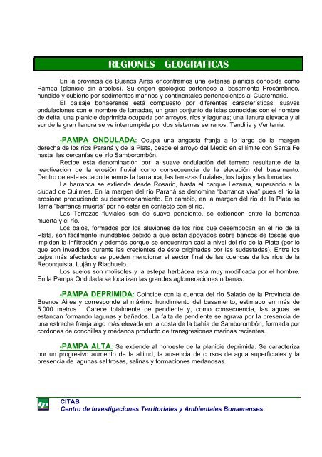 REGIONES GEOGRAFICAS - Banco de la Provincia de Buenos Aires